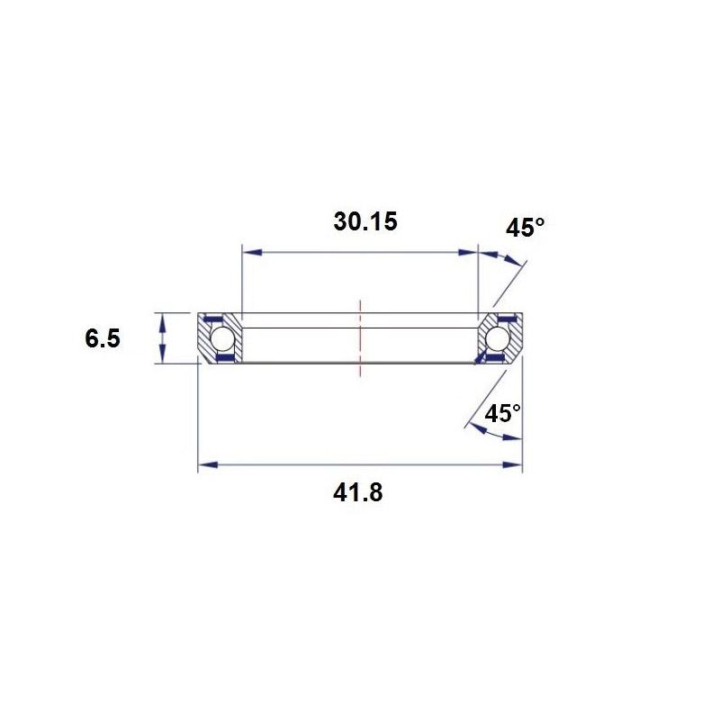 HB-B5 - ROULEMENT DE DIRECTION 1" 1/8 TAILLE 30,15 x 41,8 x 6,5 - 45/45°