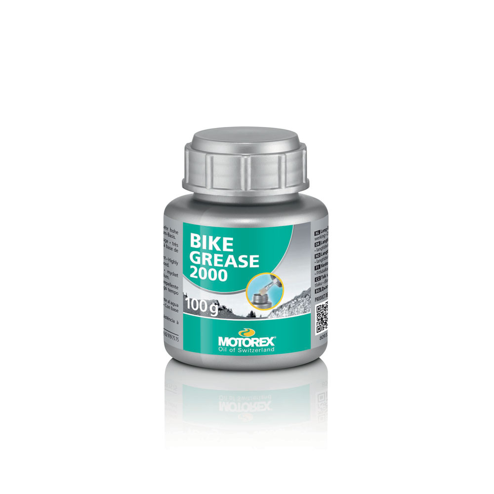 MOTOREX BIKE GRASE 2000 (FETT 2000) Grasso traslucido a lunga durata ad ALTE PRESTAZIONI per una lubrificazione ottimale. Massima adesione e assoluta resistenza all’acqua. Protezione ottimale dalla corrosione e dall’usura anche sotto carichi estremi. Prolunga la durata degli intervalli di lubrificazione.