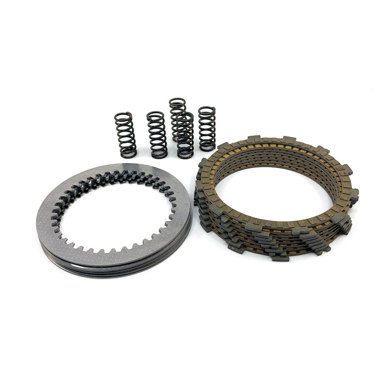Complete Pro-X clutch disc kits are produced in Japan by the FCC, a leading clutch manufacturing company, already the original supplier of most motorcycle manufacturers. Consisting of friction discs and intermediate steel or aluminum discs depending on the original configuration, in addition to the springs with the same force as the original ones, (disc springs are not included in the DDS clutch kit). The best compromise between durability and performance for your motorcycle. CAUTION CHECK THE WEAR STATUS OF THE CLUTCH PLATE AND INNER HUB BOTTOM, EXCESSIVE WEAR COULD VANIFY CORRECT OPERATION OF THE REPLACED CLUTCH