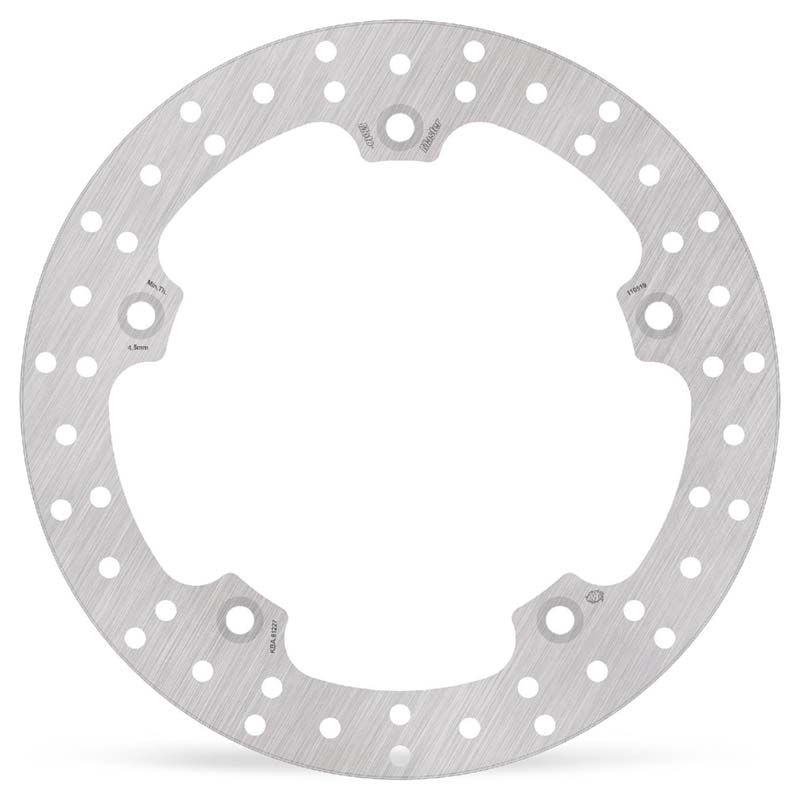 • La dimensione e la posizione esatta dei fori di ventilazione garantiscono una dispersione uniforme del calore anche sotto forte stress termico, mentre la superficie di contatto delle pastiglie freno viene pulita in modo omogeneo.