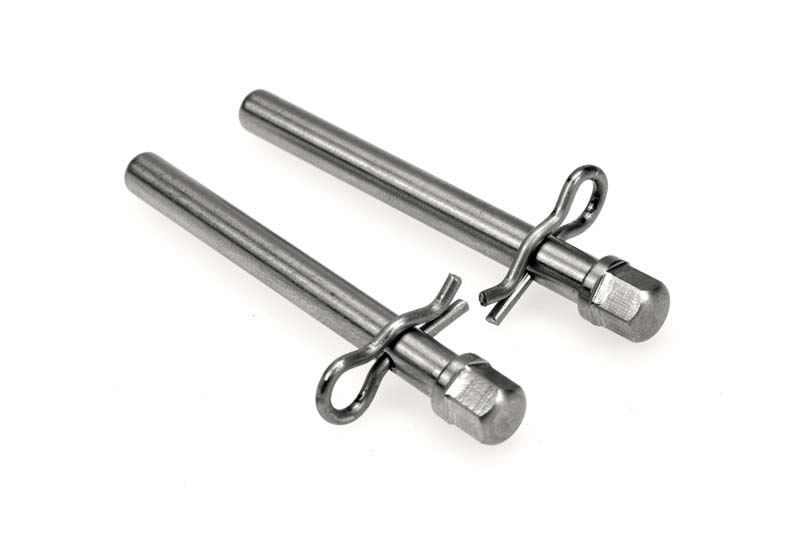 Replacement brake pad pins made of stainless steel.