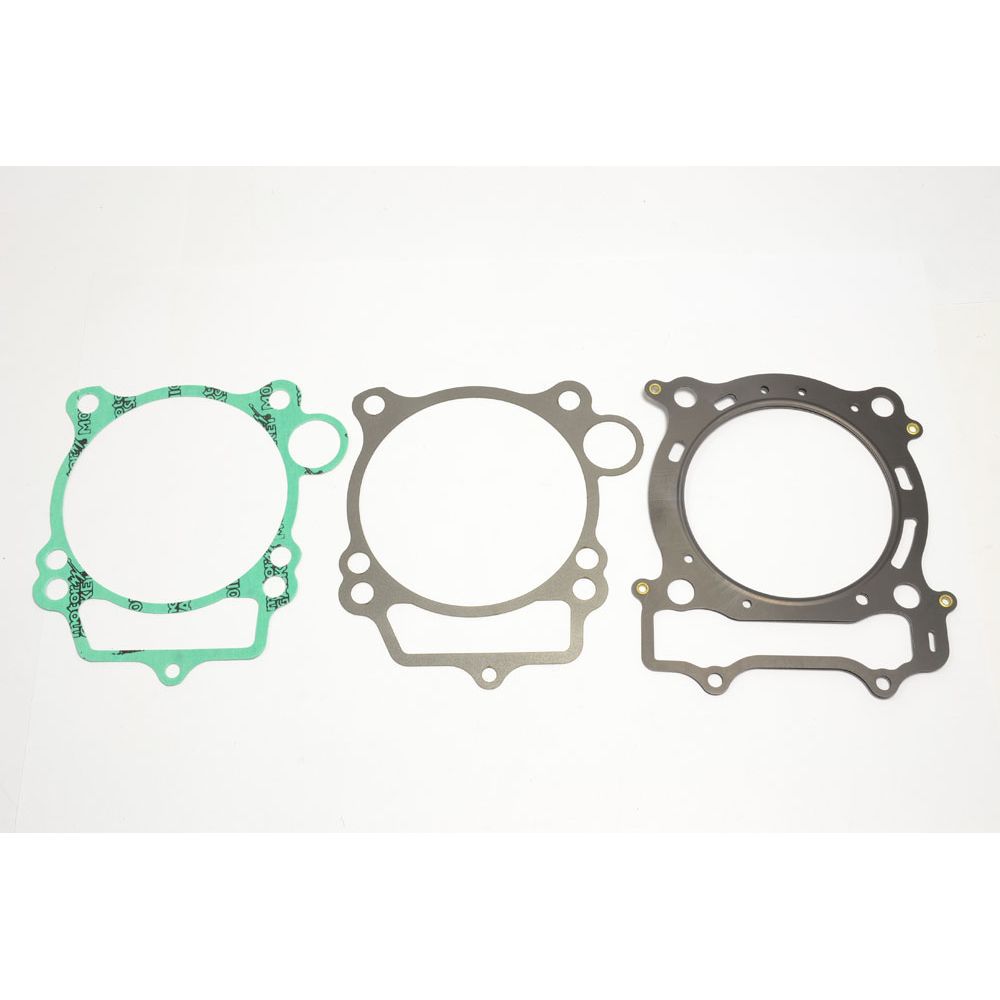 Pour préparer au mieux un moteur de compétition, il est parfois nécessaire de gérer la hauteur du cylindre sur le bloc moteur afin de pouvoir régler le squish, obtenir une meilleure compression dans la chambre de combustion ou optimiser le calage.   C'est pourquoi les techniciens d'Athena ont conçu le Race Gasket Kit, la gamme de joints moteur qui couvre toutes les applications Motocross et Enduro les plus répandues sur le marché, tant en 2T qu'en 4T. Le kit comprend un joint de culasse et deux joints de base de cylindre, l'un d'une épaisseur identique à l'original et l'autre d'une épaisseur réduite de 0,1 mm.  Pour chaque application, Athena a étudié le moteur d'origine afin de réaliser des joints qui respectent rigoureusement les paramètres stricts imposés par les constructeurs. Les joints Athena présentent une faible absorption d'humidité, une résistance mécanique maximale, une résistance aux huiles et à l'essence, une résistance aux températures et pressions élevées, ainsi qu'une facilité d'application et de retrait : en effet, aucun mastic à base de silicone n'est nécessaire pour garantir une étanchéité parfaite.  Après avoir effectué des analyses approfondies, le département R&D identifie les zones critiques où il pourrait être nécessaire d'appliquer des traitements anti-usure et d'étanchéité supplémentaires, tels que le joint en silicone, qui éliminent le risque de fuites.Le matériau le plus adapté est également identifié, grâce à un solide savoir-faire et à plus de 40 ans d’expérience dans la production de joints et de matériaux d’étanchéité : de la tôle caoutchoutée au Motorgasket®, le matériau exclusif né et breveté dans les laboratoires de recherche du Groupe Athena, tous les matériaux garantissent toujours une étanchéité parfaite, même dans des conditions extrêmes de contrainte thermique et mécanique, comme c'est le cas en course.  Le résultat est un kit de joints efficace, résistant et fiable qui permet d'obtenir un réglage parfait du moteur, le tout à un prix compétitif.