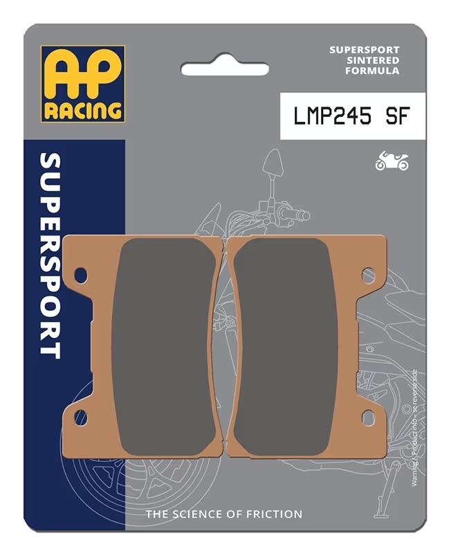 Le pastiglie freno AP Racing Supersport sono progettate per motociclette stradali ad alte prestazioni che richiedono potenza frenante elevata, modulabilità e affidabilità anche nelle condizioni di utilizzo più impegnative.