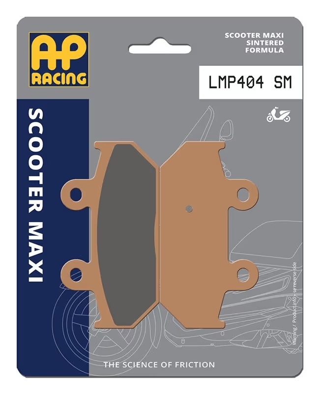 Le pastiglie freno AP Racing ScooterMaxi SM sono sviluppate con mescola sinterizzataper garantire prestazioni elevate su scooter di cilindrata superiore ai 250 cc.Offrono una frenata potente, stabile e progressiva, ideale per utilizzo urbano e touring,anche in condizioni di utilizzo intenso.