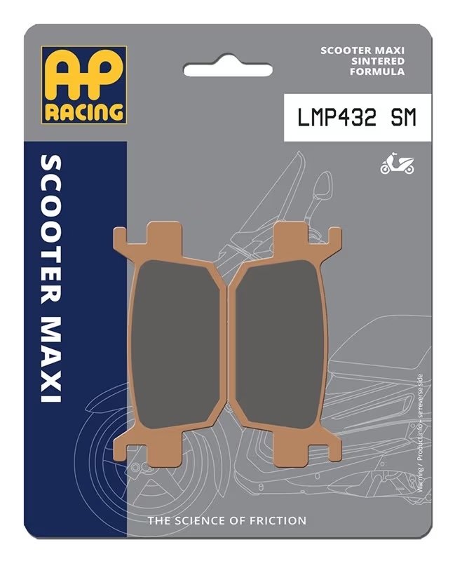 Le pastiglie freno AP Racing ScooterMaxi SM sono sviluppate con mescola sinterizzataper garantire prestazioni elevate su scooter di cilindrata superiore ai 250 cc.Offrono una frenata potente, stabile e progressiva, ideale per utilizzo urbano e touring,anche in condizioni di utilizzo intenso.