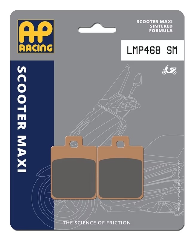 Le pastiglie freno AP Racing ScooterMaxi SM sono sviluppate con mescola sinterizzataper garantire prestazioni elevate su scooter di cilindrata superiore ai 250 cc.Offrono una frenata potente, stabile e progressiva, ideale per utilizzo urbano e touring,anche in condizioni di utilizzo intenso.