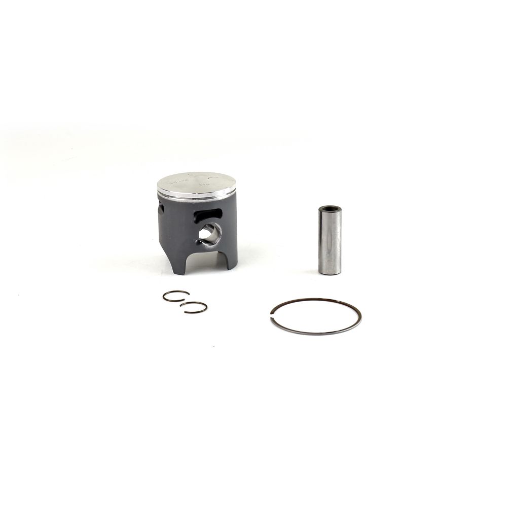 This piston kit contains the piston, the pin, the circlips, and the piston rings. All components are replaceable and interchangeable in case of need.