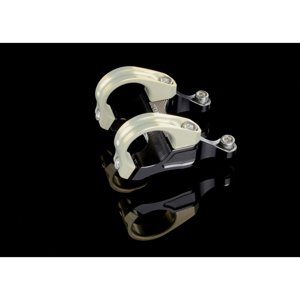 The use of two independent, C-shape handlebar clamps, an ultra-wide handlebar clamping area and six bolt assembly give the highest possible strength and stiffness, at an incredibly low weight.