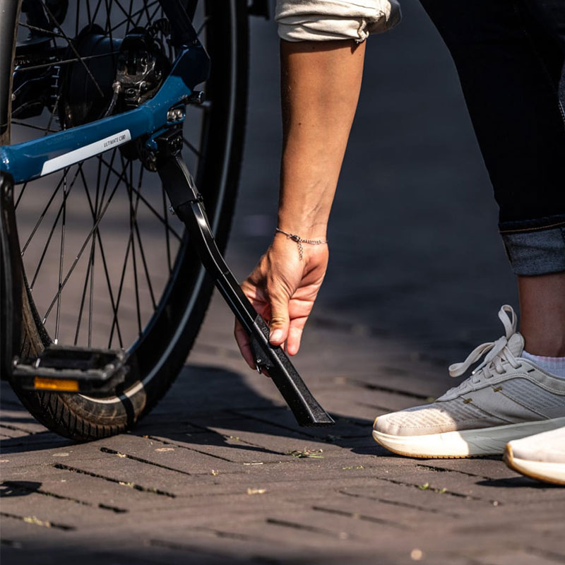 Il cavalletto ConnectKick per city bike è regolabile in altezza e si adatta a tutti i telai con piastra di supporto integrata e distanza tra i fori di 18 mm. Inoltre, offre una regolazione in altezza senza attrezzi, comprese le viti di fissaggio.