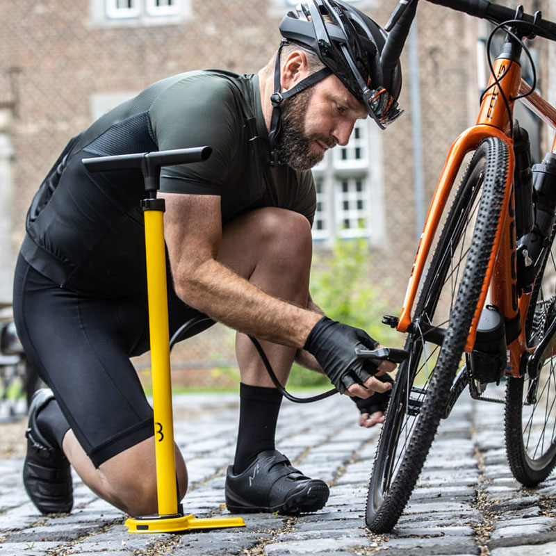 Pompa per biciclette AirSteel in acciaio. Il manometro grande e preciso ti mostra la pressione che stai esercitando sulla gomma, mentre la testa della pompa Dualhead 3.0 assicura che le tue mani non si feriscano quando la stacchi dalla valvola. Con questa pompa per biciclette puoi gonfiare i pneumatici fino a una pressione massima di 11 bar (160 PSI). Puoi raggiungere facilmente la pressione desiderata, garantendo prestazioni ottimali dei pneumatici per una guida più fluida. La pressione è visualizzata sul manometro da 3,0 pollici, che la rende facile da leggere.