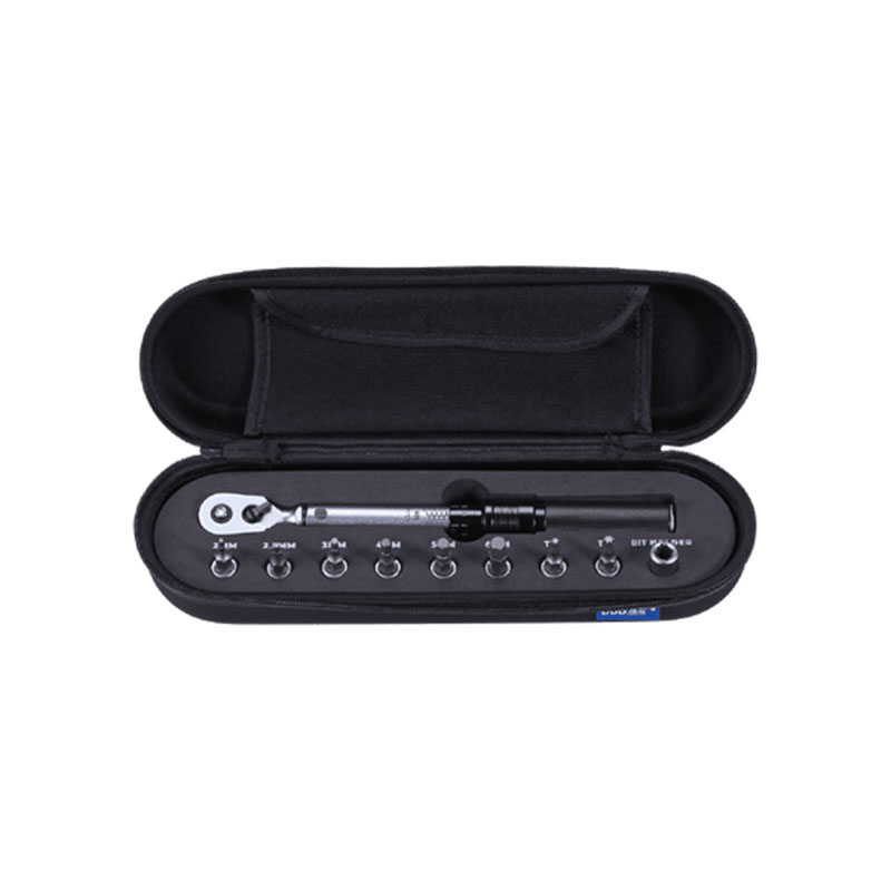 The PrecisionTorque torque wrench is a must for sports cyclists. This set of 1/4? ratchet torque wrenches, with a versatile torque range of 1-10 Nm, guarantees precision with every turn. Its highly accurate 0.1 Nm increments allow for meticulous tightening. The click mechanism provides unambiguous feedback when the desired torque is reached. Computerised calibration and individual performance testing guarantee reliability and safety. In addition, the possibility of recalibration ensures long-lasting accuracy. With a practical case and 9 inserts included, it is a complete set of torque tools that meets all the needs of cyclists.