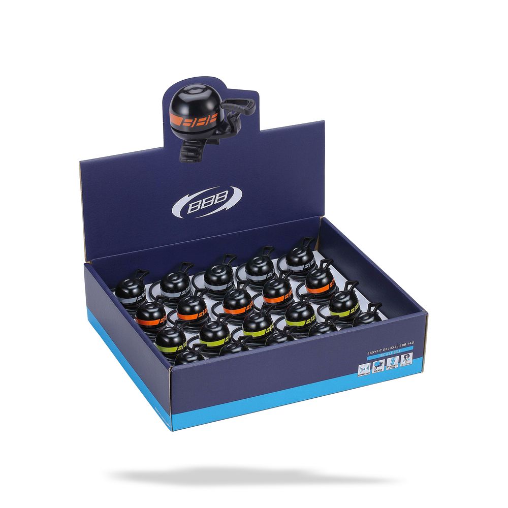 Display Box 20pc with Bike Bells Easyfit | Grey-Orange-Yel-Mage